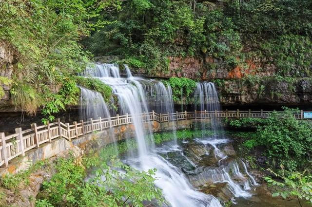 山景云海之外,还有飞瀑成群。黄连河瀑布群位于大关县东南,汇聚47条大小瀑布。最壮观的是“情郎瀑”,落差高达142米,宛如白练,从山崖一泻而下。行走在瀑布之间,不自觉就把暑气抛洒在山林之间。